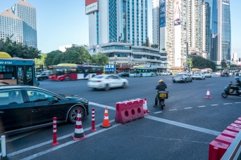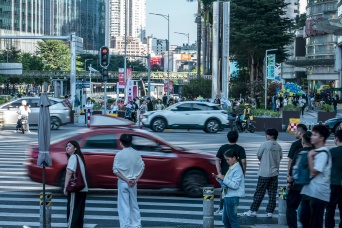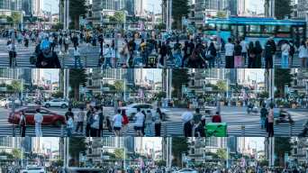 广州都市交通早晚高峰红绿灯斑马线人流延时